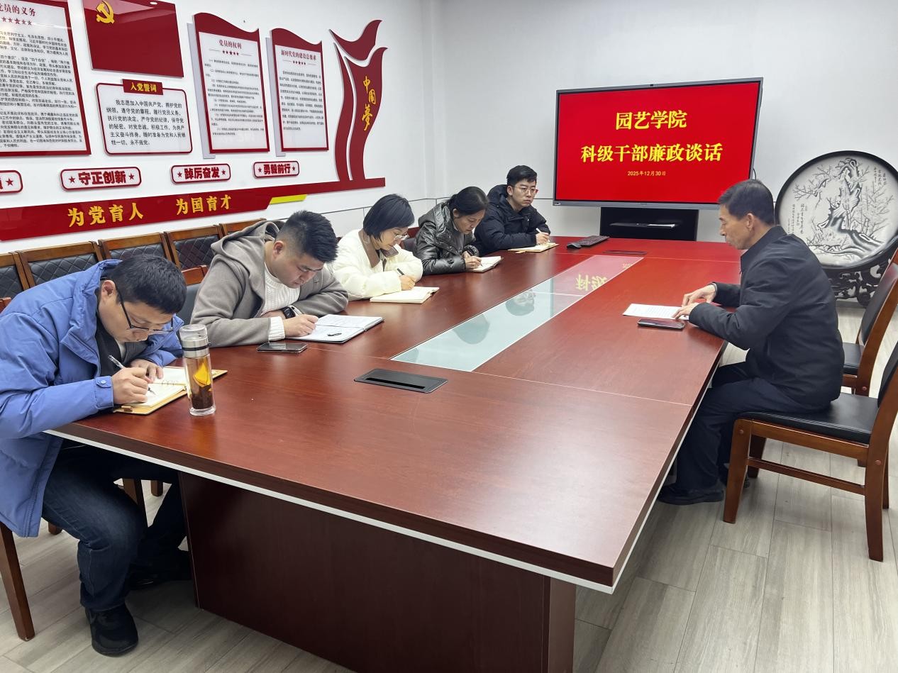 12月30日下午,beat365正版唯一官网党委书记隋成竹在生物楼N306与全体科级干部开展廉政谈话,进一步加强干部队伍建设,增强廉洁自律意识和责任担当。