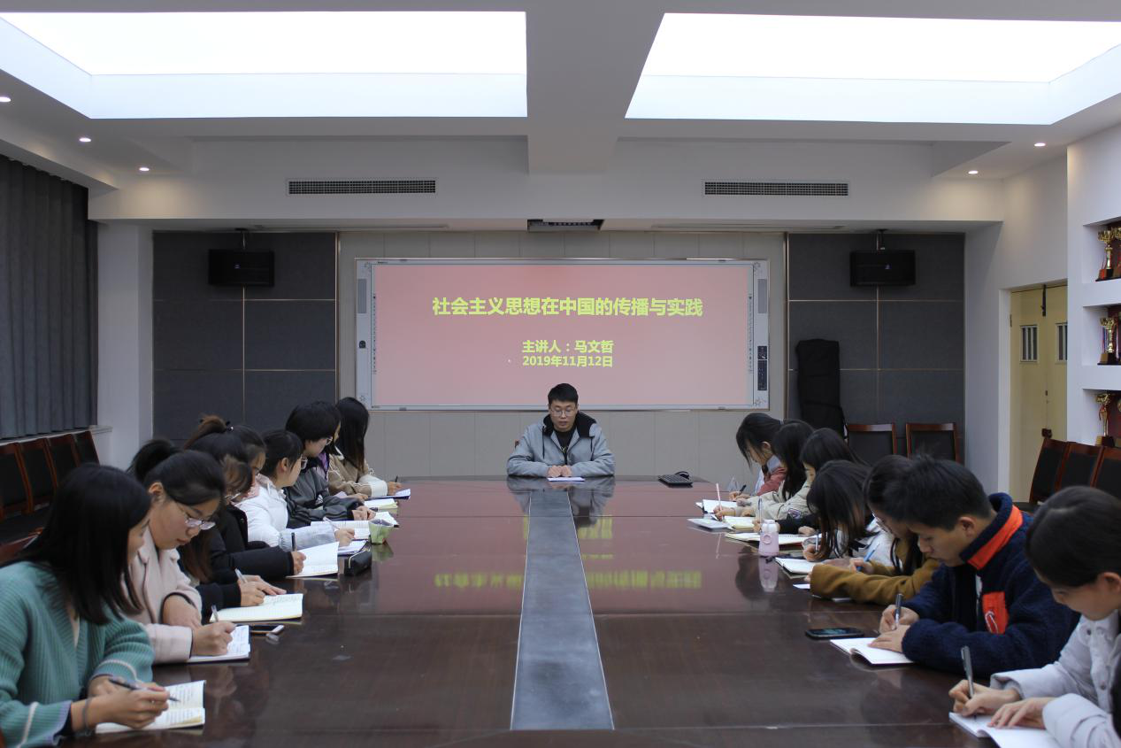 11月12日,beat365正版唯一官网辅导员马文哲在生物楼会议室以《社会主义思想在中国的传播与实践》为题讲党课。学习过程中,马文哲从“中国共产党的历史是马克思主义在中国的发展史”、“中国共产党坚持和发展马克思主义的成功探索”、“坚持和发展马克思主义是中国共产党的永恒主题”三个方面,向同学们讲述了社会主义思想在中国的发展历程。“重温历史经典、感受时代魅力,弘扬传统文化、躬身社会实践,一个时代有一个时代的奋斗目标,一个时代有一个时代的青春理想,各位同学,应当努力追寻自己的榜样,敢于担当敢于作为,争做‘四有’青年。”