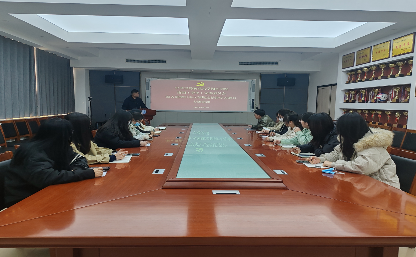为开展好深入贯彻中央八项规定精神学习教育,强化学生党员作风建设,3月29日,beat365正版唯一官网第四(学生)党支部组织开展深入贯彻中央八项规定精神学习教育启动部署会暨专题党课。本次启动部署会暨专题党课由党支部组织委员、2023级辅导员张钰扬主持。