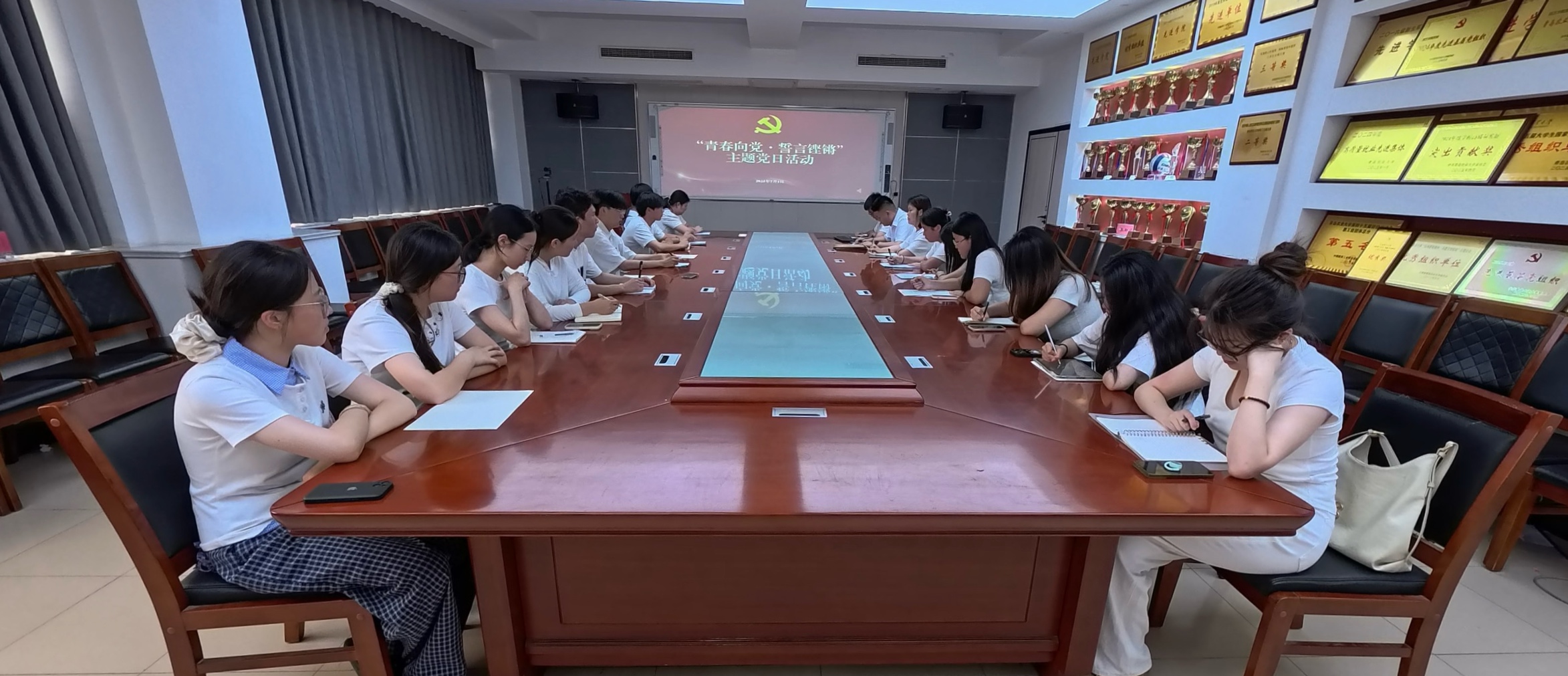 7月1日,在中国共产党成立104周年之际,学院第四(学生)党支部于生物楼N306开展“青春向党·誓言铿锵”主题党日活动,第四(学生)党支部全体党员参加活动。活动由党支部组织委员张钰扬主持。