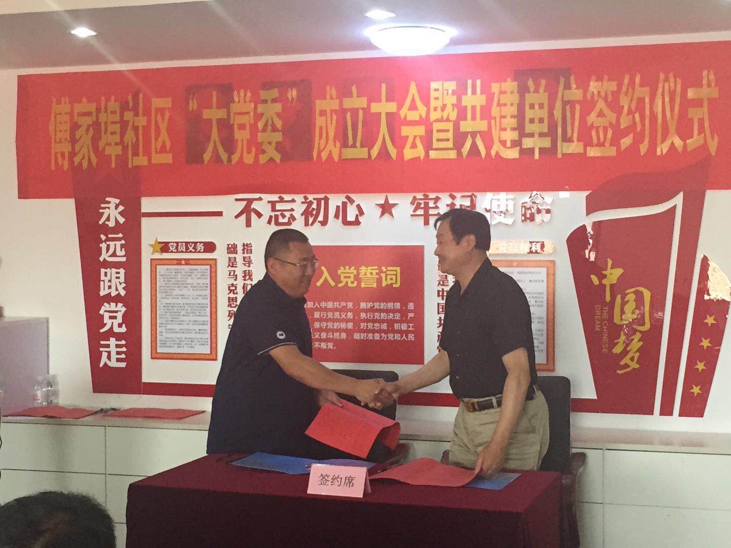 6月28日,惜福镇街道傅家埠社区“大党委”召开了共建共享座谈会,会议由街道惜福片区联合党委书记王丕晓同志主持,惜福镇街道组织委员宋玲莉同志参加。会上,傅家埠社区党委书记傅言先同志和惜福镇街道中心小学党支部书记黄秀萍同志分别代表傅家埠社区党委和共建单位进行致辞,来自11家共建单位的代表们与傅家埠社区签约并进行座谈。