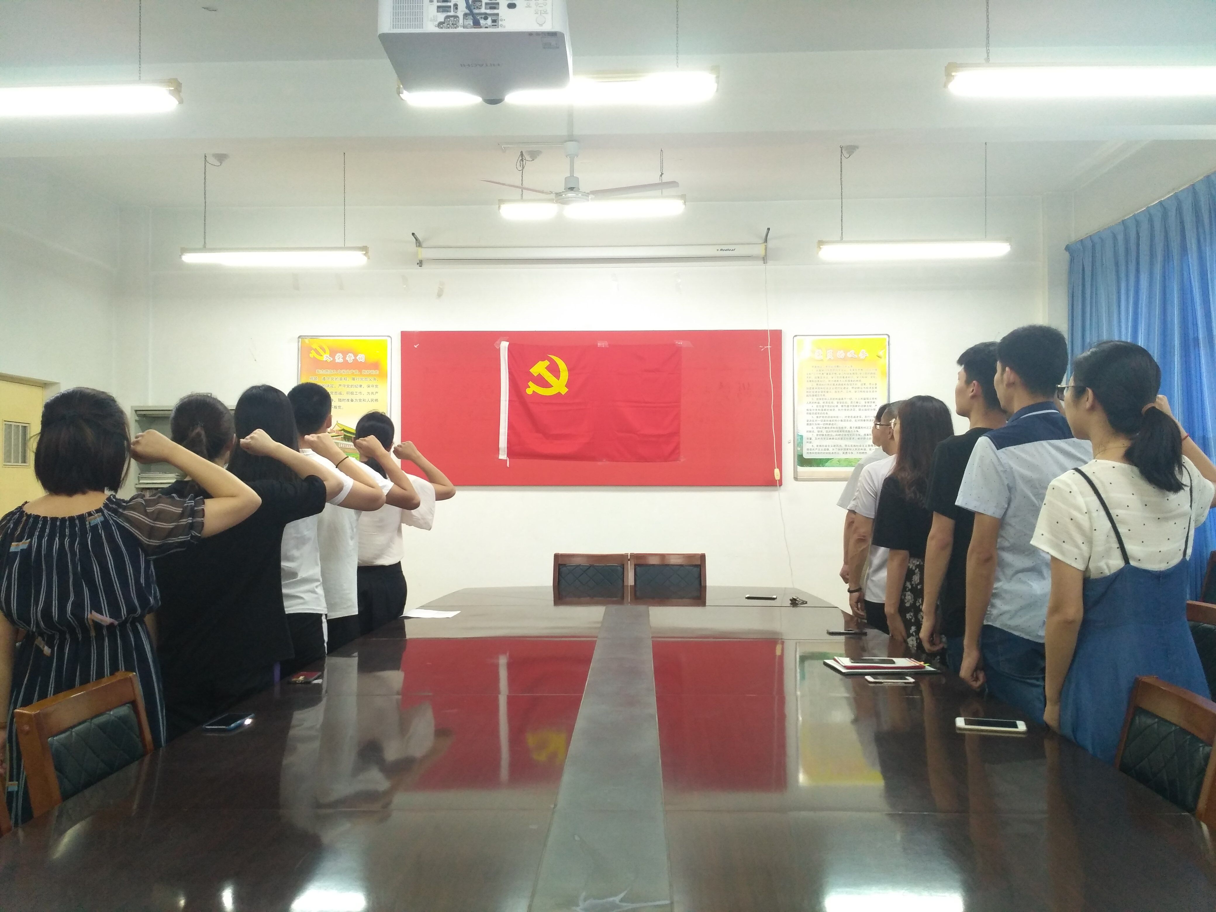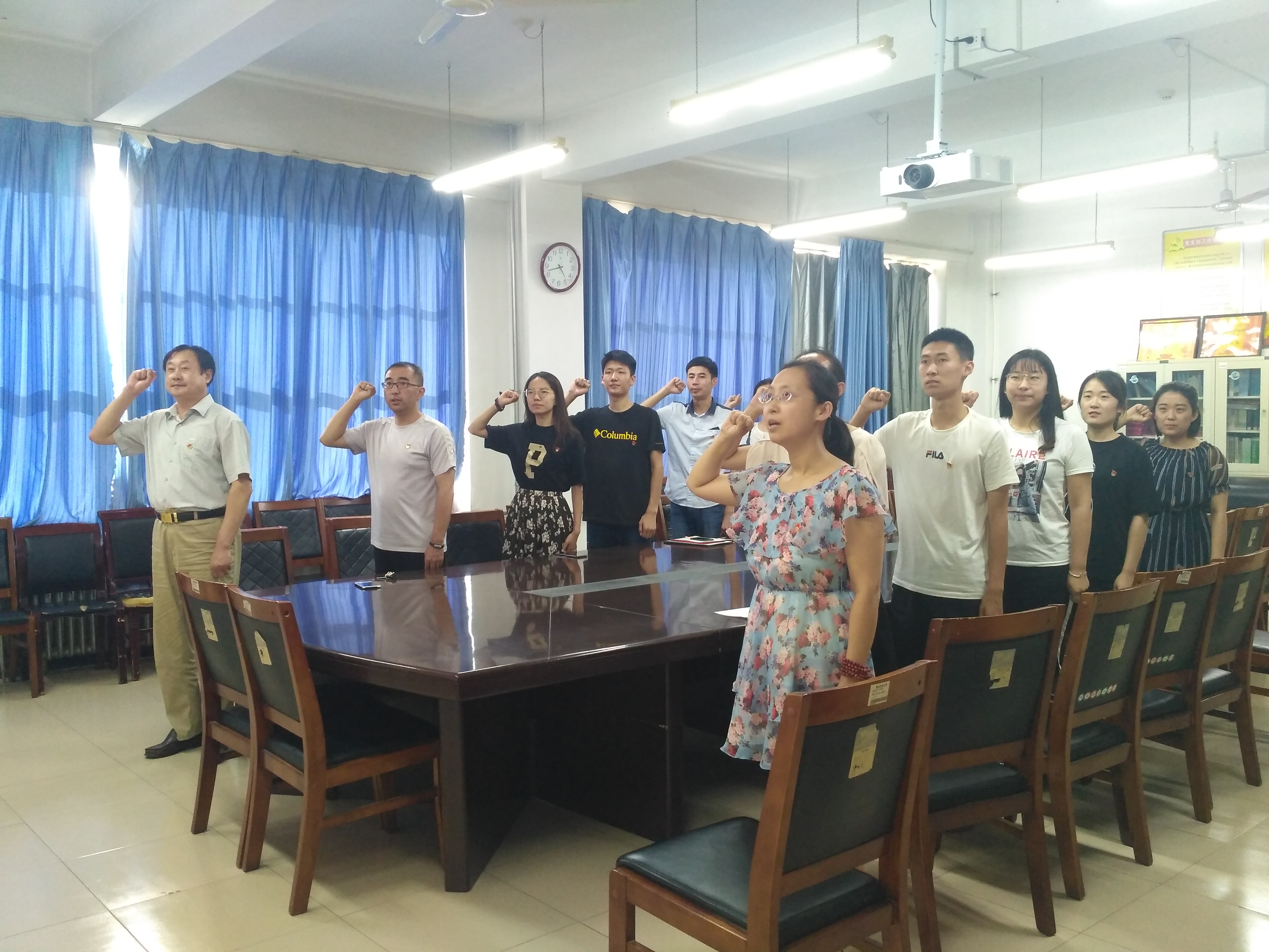 6月29日,beat365正版唯一官网在会议室举办新发展党员入党宣誓、老党员重温入党誓词仪式。beat365正版唯一官网党委书记刘培利、党委副书记王春晓、第三党支部书记刘燕杰、第四党支部书记宋颖芳以及在校学生党员参加宣誓,会议由刘燕杰主持。