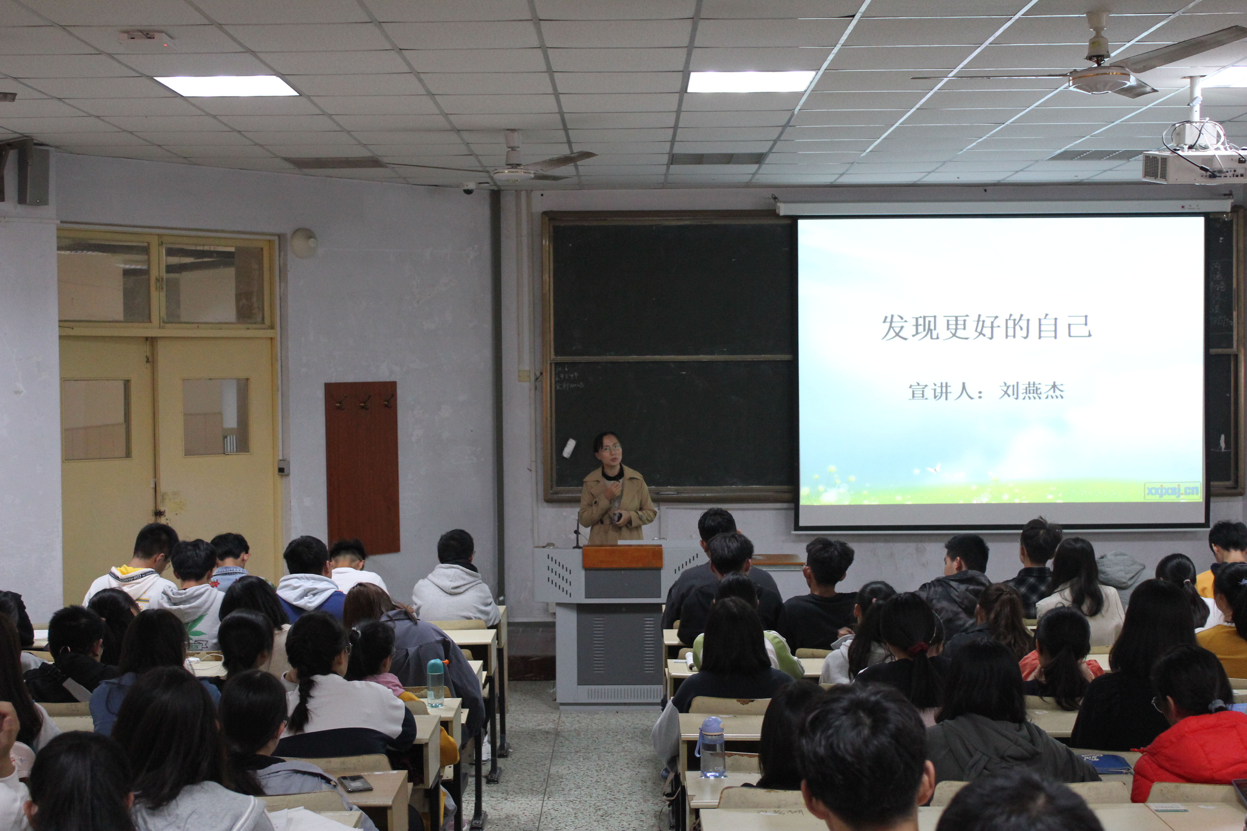 讲座开始,刘燕杰以“唐僧的自我介绍”引出讲座主题:“你从哪里来?”、“要到哪里去?”、“现在要做什么?”,通过这三个问题引发学生对过去、现在和未来的思考。接着,她从“学会接纳自己”、“未来,你想过什么样的生活”、“大学生活要做点什么”三个方面展开讲述。