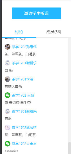 本课程主要以PPT展示加同声直播为主(图3-4),在授课中对一些重难点通过在PPT上标注或是在讨论区介绍的形式向大家讲解。同时也会在线上随机提问,通过讨论区让大家写出答案,供大家一起讨论(图5),一方面加深大家的记忆,另一方面是对学生学习过程进行监督。另外,我也会穿插一些视频或生活中的素材来形象化一些抽象的知识点。