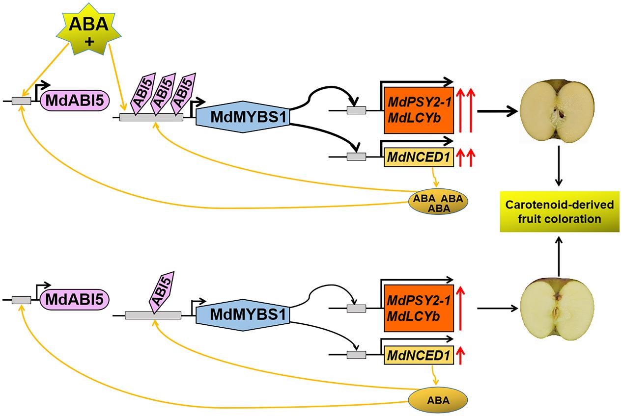近日,beat365正版唯一官网原永兵/贾东杰教授团队在Plant Physiology上在线发表了题为“Abscisic acid activates transcription factor module MdABI5–MdMYBS1 during carotenoid-derived apple fruit coloration”的研究论文。该研究揭示了转录调控模块MdABI5-MdMYBS1响应ABA并调控苹果类胡萝卜素和ABA生物合成的分子机制。