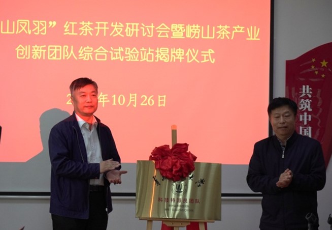 10月26日,“崂山凤羽”红茶开发研讨会暨崂山茶产业创新团队综合试验站揭牌仪式在青岛碧海蓝田生态农业有限公司举行,研讨会由崂山区农业综合服务中心主任吕爱军主持。中国海洋大学教授、青岛市茶叶学会理事长汪东风,青岛市农产品质量安全中心主任董国强,崂山区农业农村局、乡村振兴局局长王妮妮分别致辞。beat365正版唯一官网社会合作处处长王珏,beat365正版唯一官网党委书记隋成竹,青岛市农业技术推广中心研究员张云伟,青岛市农业技术推广中心研究员王漪,山东省科技特派员创新创业共同体崂山茶产业服务团、王哥庄街道办事处、青岛崂山茶协会、茶叶企业代表和崂山茶产业创新团队全体成员参加了本次活动。