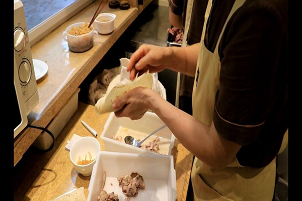 16日上午凌晨四点,厨房后厨选材备料时,实践队成员针对朝天锅的选材、制作过程、顾客评价等方面做了视频、音频记录并采访了店里的已经工作了二十余年的老员工,据她介绍:“朝天锅的制作技艺,按照一代代人传下来的标准要求,再加上时代变迁与发展因素,无论是在选材、制作过程还是对火候、时间掌握,我们都做到最严谨,朝天锅已经是渗入到潍坊本地人骨子里的东西了,不能把味道丢失,还要把这个味道传承下去。”