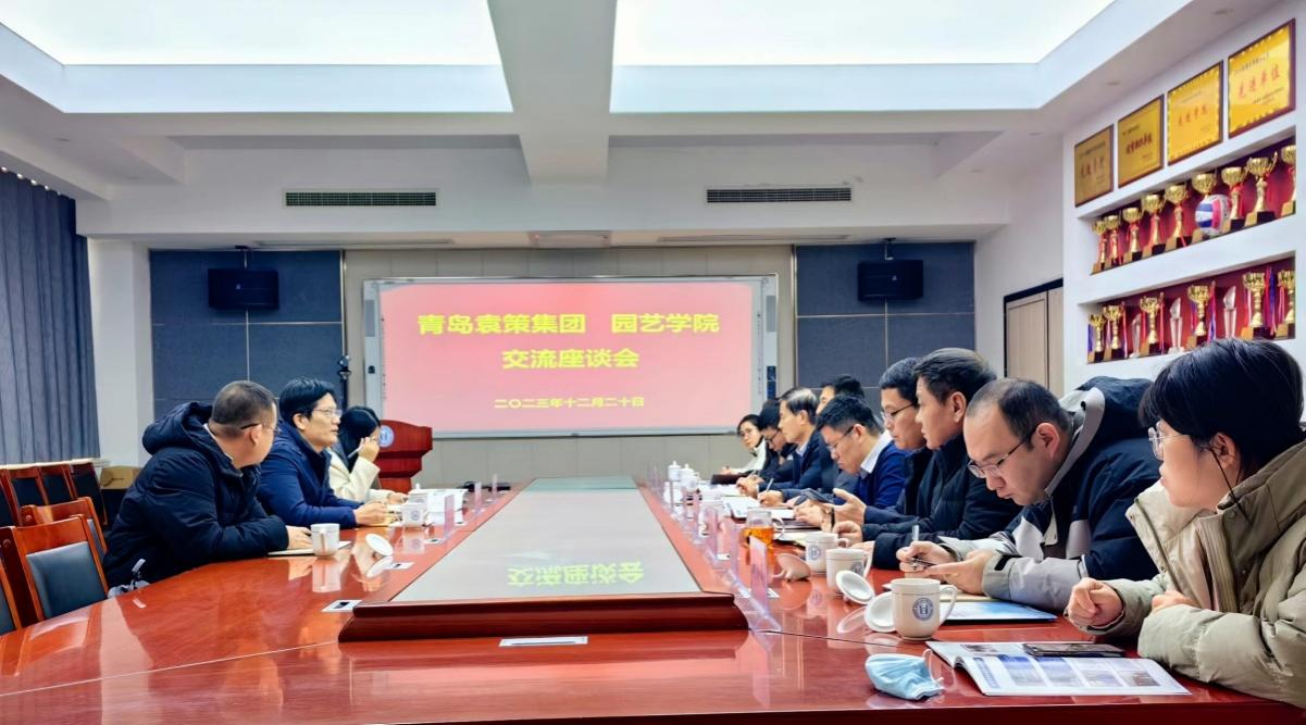 12月20日上午,青岛袁策集团有限公司总经理米铁柱、技术总监万吉丽、技术经理杨华一行来访beat365正版唯一官网。beat365正版唯一官网党委书记隋成竹、院长张忠华、副院长张新富、院长助理郑晓东和部分专业老师参加了本次合作洽谈会。