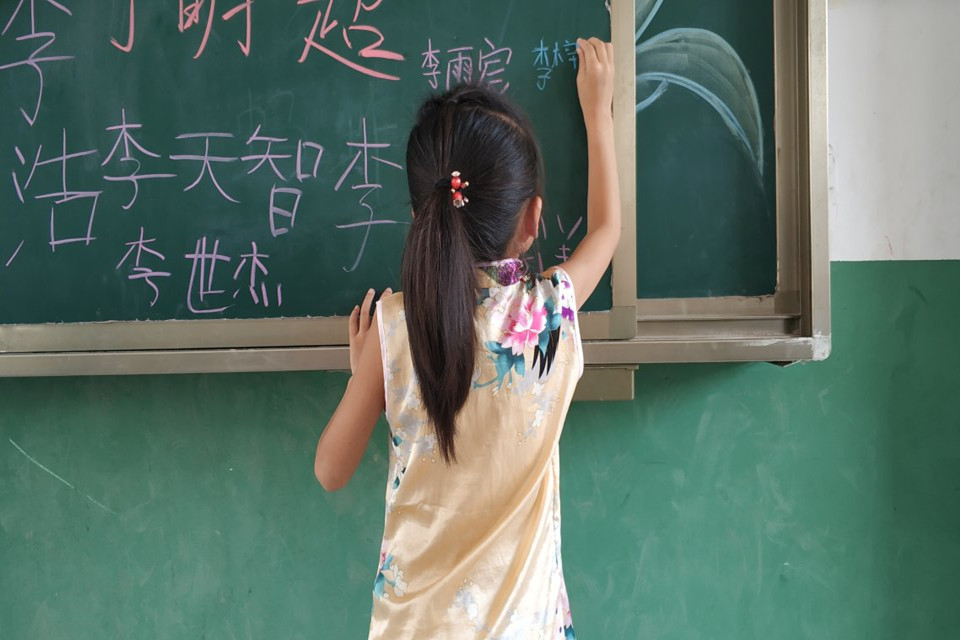 接下来我们正式开始教授我们准备好的课程,队员董翠娜给孩子们上了开学的第一节课——安全防护知识,上完课后的她又激动又惊喜。据她描述,当在黑板上写完字,回过头看到一个个端正的坐姿,一双双渴望的眼神,果然认真的孩子们都是最可爱的,心里说不出来的感动。