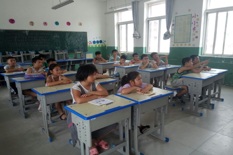 在第一天的课程结束前,进行了一个小时的假期作业辅导。有的孩子在复习讲过的知识,有的孩子在预习下一学期的课程,也有的孩子在画画。但最吸引我们视线的是一对同桌,他们借来方格纸,认真书写,十分钟后叫来队员,来评判两人字的好坏,原来这是一场文字的较量,没有任何的赌约,单纯而美好。但在我们队员心里,却是无法评判,二人各有特点,李世杰同学字正规,李世鸣字体豪放,最重要的是想把字写好的心。