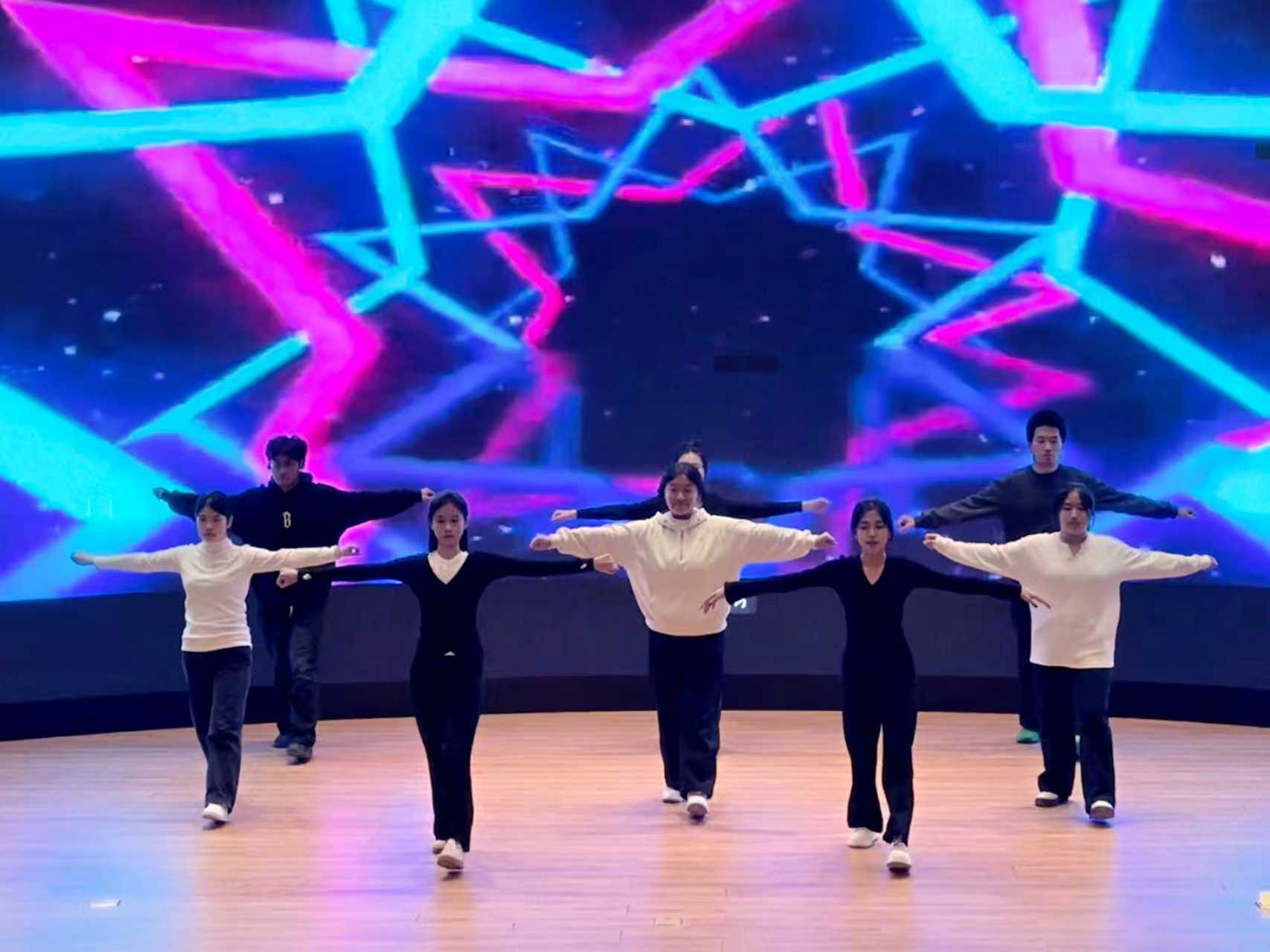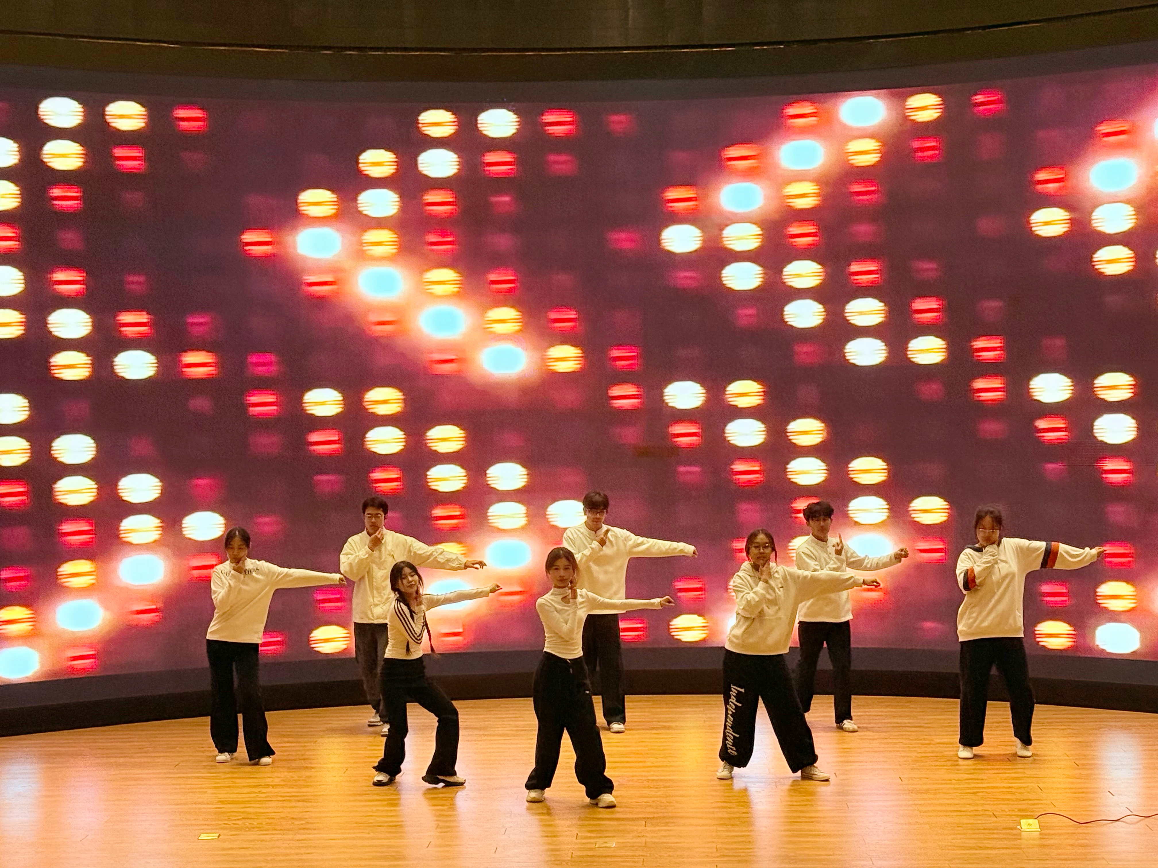 11月27日晚,beat365正版唯一官网在平度校区明德楼报告厅举办“跃动青春,聚力同行”大学生校园健身操比赛,辅导员刘园、张钰扬及2025级学生参加活动。