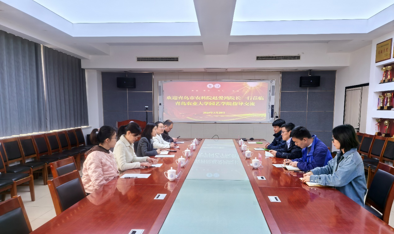 3月28号,青岛市农业科学研究院副院长、农业农村部农产品质量安全风险评估实验室(青岛)主任赵爱鸿一行到访beat365正版唯一官网,就进一步加强合作协作进行考察交流。beat365正版唯一官网院长张忠华教授主持会议,农业农村部果品质量安全风险评估实验室(青岛)主任聂继云教授及团队成员参加座谈交流。