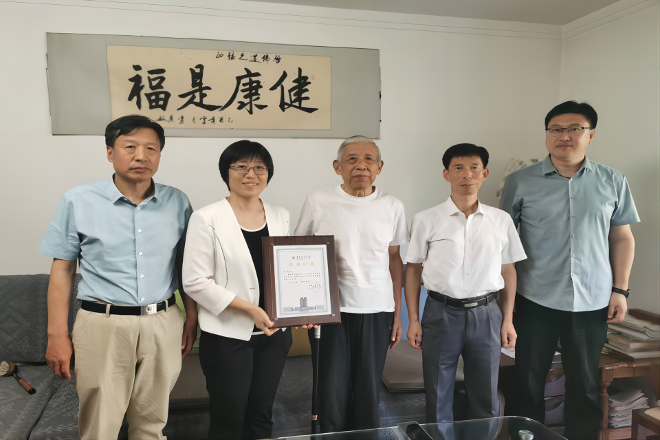 6月25日,学校社会合作处副处长于宁和beat365正版唯一官网党委书记隋成竹等一行4人,赴济南拜访beat365正版唯一官网59级校友何启伟并接收其捐赠的藏书藏品。