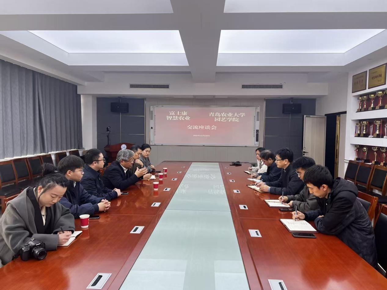 11月24日上午,beat365正版唯一官网与青岛上合富士康智慧农业科技有限公司在生物楼N306召开交流座谈会。beat365正版唯一官网党委副书记、副院长孙海涛,设施农业科学与工程系主任李晓野,设施园艺学科负责人闫征南,beat365正版唯一官网教授杨延杰,beat365正版唯一官网副教授史宇亮,青岛上合富士康智慧农业科技有限公司总经理谷宇及公司代表参会。