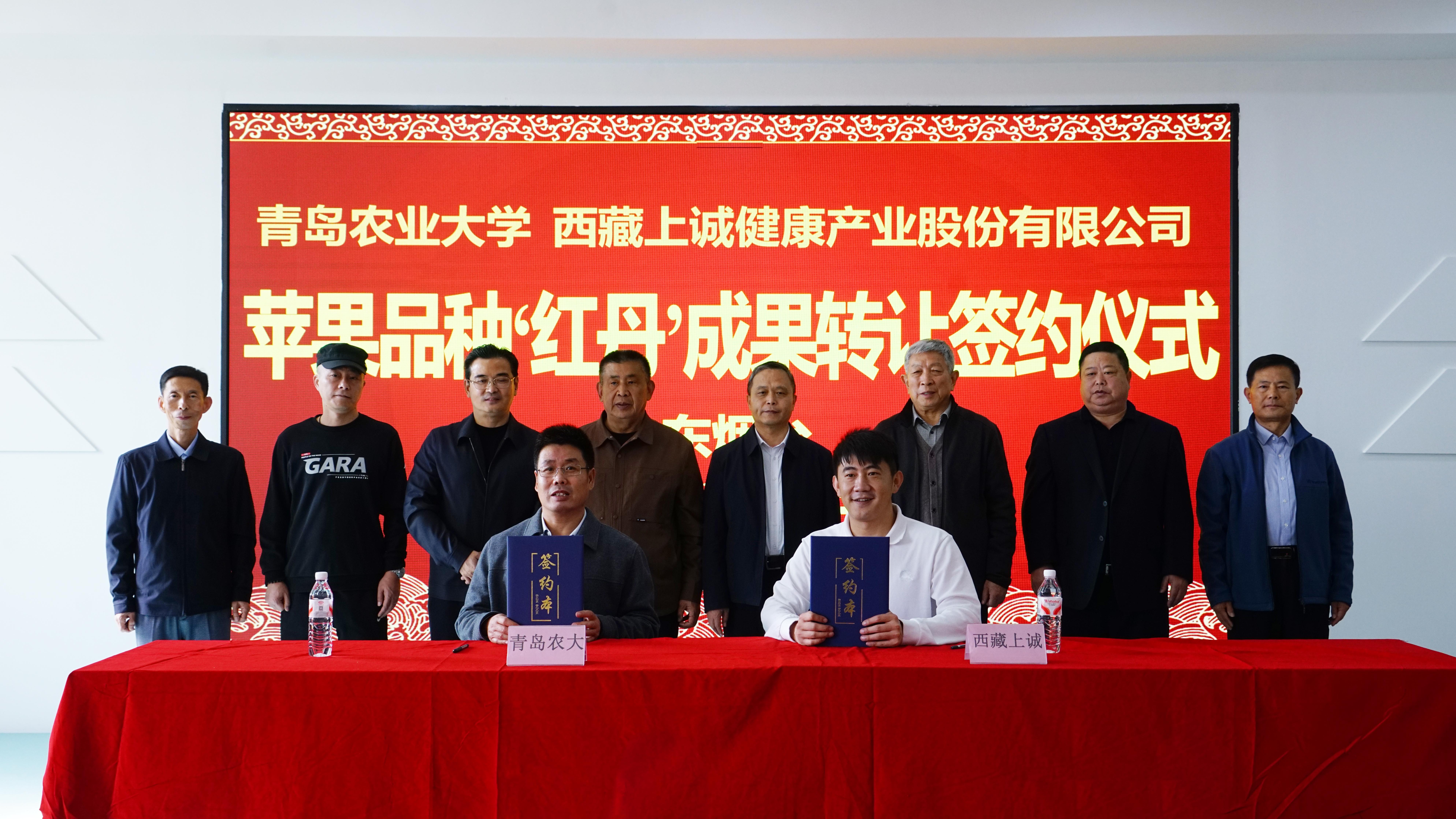 11月5日,beat365正版唯一官网苹果新品种“红丹”以200万元转让西藏上诚健康产业股份有限公司。签约仪式在烟台大山果业开发有限公司会议室举行。校党委委员、副校长郭尚敬代表学校致辞。烟台市农业农村局副局长吴晨光,烟台大山果业开发有限公司董事长林成欣,西藏上诚健康产业股份有限公司总经理林传清,苹果育种团队专家戴洪义教授等30多人出席仪式。