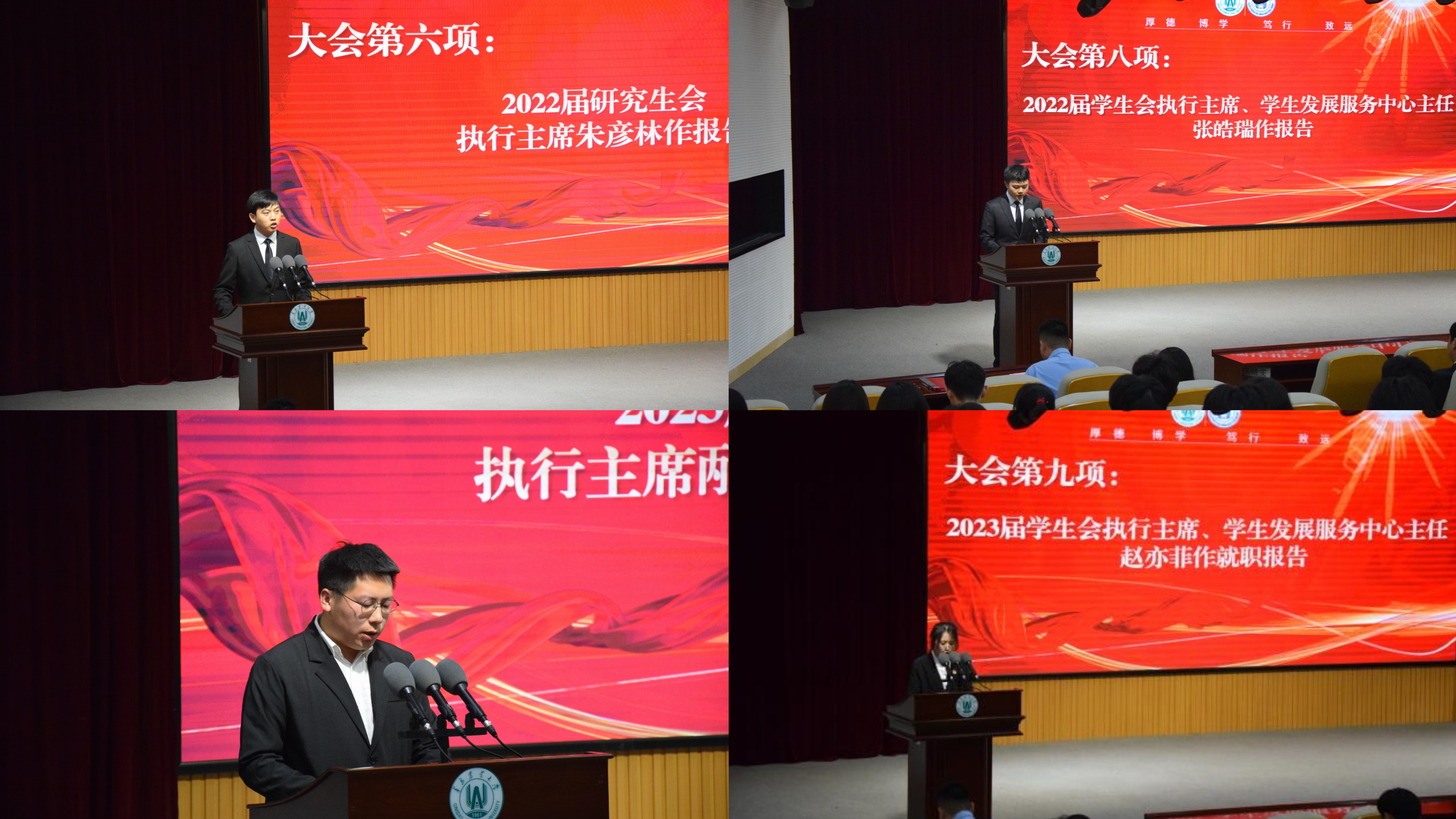 会上,2022届研究生会执行主席朱彦林,学生会执行主席、学生发展服务中心主任张皓瑞分别对2022-2023学年学院研究生会、学生会和学生发展服务中心的工作进行了总结。2023届研究生会主席团成员邴立学,2023届学生会主席团成员、学生发展服务中心主任赵亦菲代表新一届研究生会、学生会和学生发展服务中心作就职报告,表达了为同学们服务的期望和尽职尽责干好工作的态度,并对开展好2023-2024学年学生组织工作提出了设想。