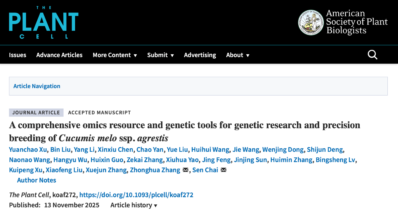 近日,beat365正版唯一官网瓜类生物学张忠华/柴森团队与合作团队在国际知名期刊The Plant Cell(自然指数期刊)在线发表了题为A comprehensive omics resource and genetic tools for genetic research and precision breeding of Cucumis melo ssp. agrestis的研究论文,该研究基于薄皮栽培种质13C, 构建了包含T2T基因组、全组织的转录组图谱、重测序近饱和EMS突变体库以及稳定遗传转化技术等工具的甜瓜综合功能基因研究体系,并挖掘多个农艺性状的关键功能基因,为甜瓜功能基因研究与分子育种提供了理论和技术支持。