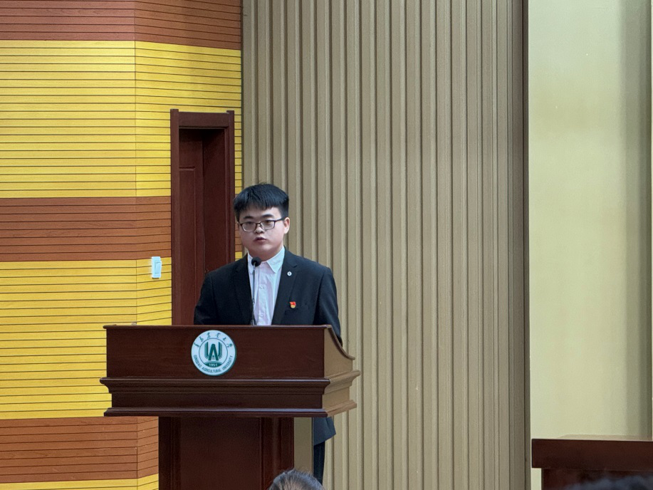 2025届研究生会执行主席张慧莹作就职报告,提出了本届研究生会工作的思路及工作重点,接下来将完善研究生会的规章制度,更好地为研究生服务。