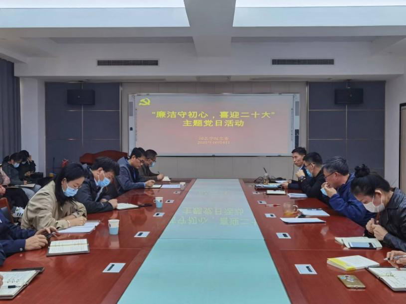 10月6日,beat365正版唯一官网组织召开全面从严治党暨党风廉政建设专题学习会、“廉洁守初心,喜迎二十大”主题党日活动。会议由隋成竹主持,学院全体党员和教职工参加。