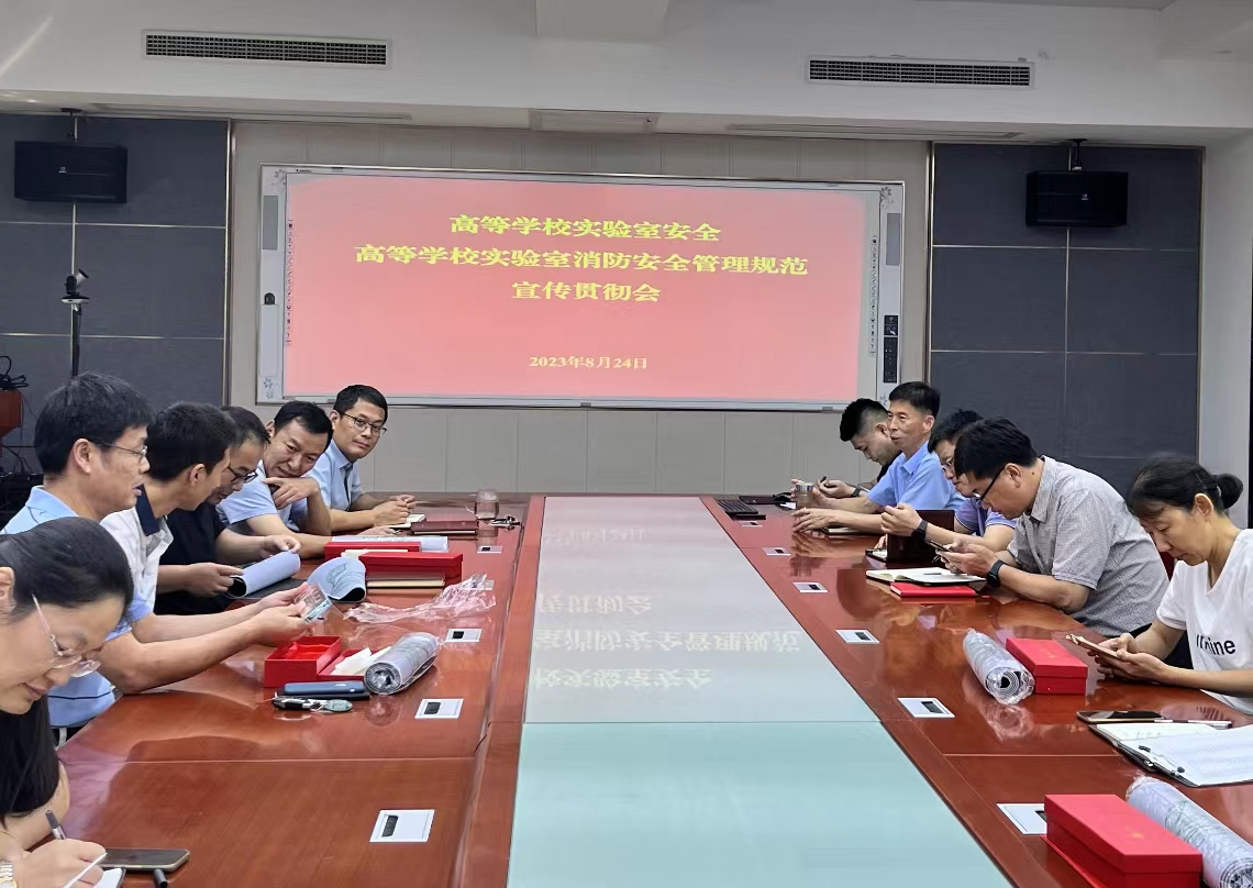 8月24日下午,beat365官网在生物楼N306会议室组织召开《高等学校实验室消防安全管理规范》集中学习宣传贯彻会,会议由学院党委书记隋成竹主持,院长、党委副书记、副院长、实验中心主任以及实验室负责人、实验室安全管理人员等参加会议。会上,实验中心主任领学了《高等学校实验室消防安全管理规范》,重点解读了实验室消防安全管理的总体要求、消防安全责任、消防安全制度和管理、消防安全措施、灭火和应急疏散预案编制和演练、火灾事故处置与善后以及奖惩制度。隋成竹进一步强调了有效提升师生消防安全素质和安全隐患排查整改能力的重要性,要求各实验室负责人要及时发现问题解决问题,推动安全教育和贯彻落实工作走深走实。