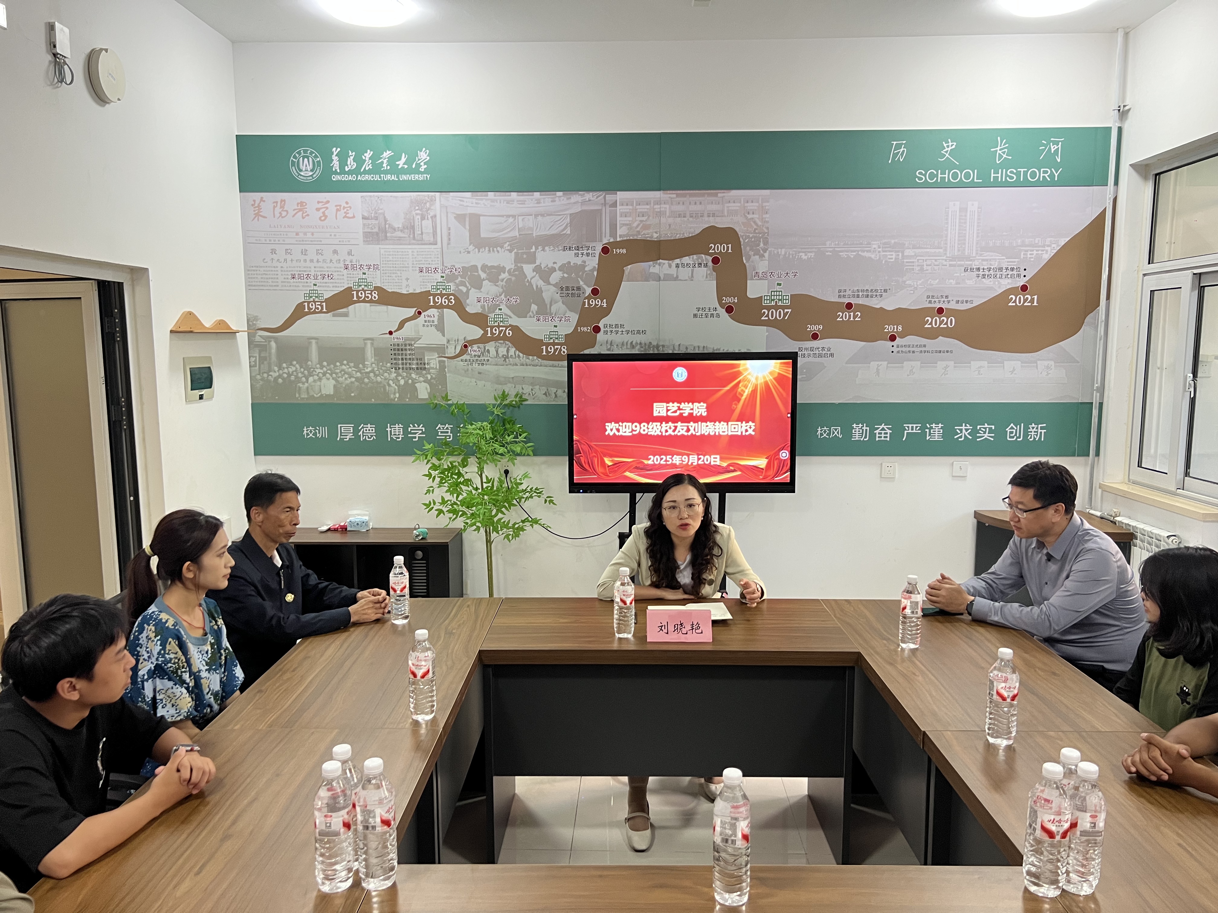9月20日下午,beat365正版唯一官网98级校友、湖北省生物农药工程研究中心暨国家生物农药工程技术研究中心副主任刘晓艳在平度校区一站式社区与2025级新生开展座谈交流。beat365正版唯一官网党委书记隋成竹,学工办辅导员及部分2025级新生代表参加座谈,会议由学院党委副书记、副院长孙海涛主持。