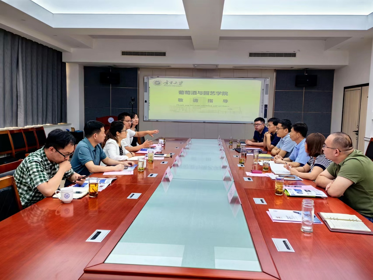 8月11日,宁夏大学葡萄酒与beat365正版唯一官网副院长(主持工作)张雪艳一行5人到访beat365正版唯一官网。beat365正版唯一官网党委书记隋成竹,副院长张新富,部分系主任、学科负责人和相关团队教师等参加调研交流,双方围绕学生培养、科学研究、学科建设等内容进行了座谈。