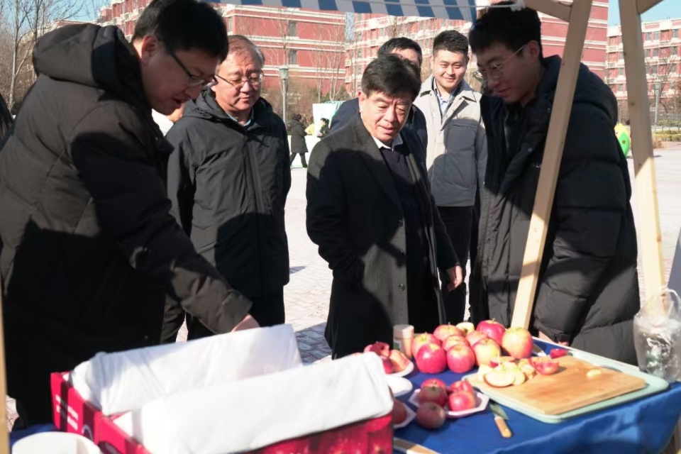 嘉年华在《不再犹豫》的歌声中拉开帷幕。田义轲代表学校对本次活动的召开表示热烈祝贺,田义轲表示,本次活动的举办,不仅是植物生产类学科的成果展示,更是各学院贯彻落实全国、全省教育大会精神和学校第三次党代会精神的实际举措,希望各学院持续强化专业规范建设,为乡村振兴和强国建设培养更多高素质知农爱农人才,希望同学们能够感悟植物生产文化,提升对植物生产的认知,做到学农知农、学农爱农、学农兴农、扎根基层、立志成才,为建设农业强国贡献青春智慧和力量。随后,田义轲一行参观了不同展区,品鉴地瓜、花生、苹果等科研成果,观赏制作精美的昆虫标本和植物标本,详细向现场同学们了解相关学术科研成果、作品制作过程等,鼓励同学们坚定文化自信、树立专业信心,争做“学农爱农”的新时代“三农”人。