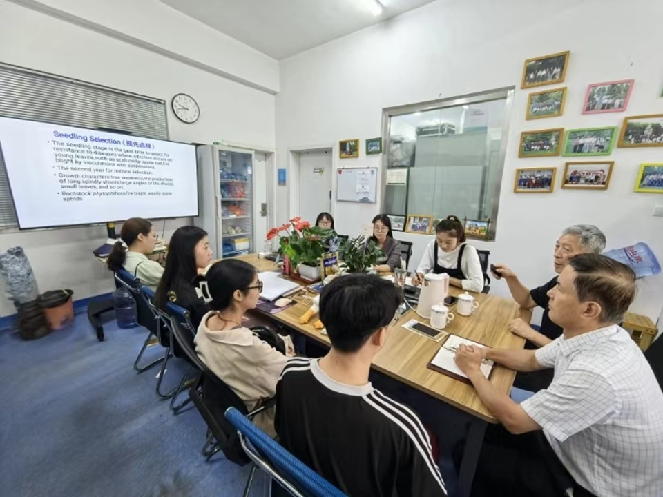 秋高气爽,硕果飘香。9月14日上午,beat365正版唯一官网退休老教授—学校关工委副主任戴洪义和祝军为2024级苹果育种方向的研究生新生上了开学第一课。戴洪义教授以“苹果育种三十年回顾”为题,为同学们讲述了苹果育种课题组成立三十年以来团结奋斗的历程和所取得的丰硕成果;分享了从事苹果育种科学研究的心得体会;勉励同学们弘扬主动探索的精神,努力培养独立思考、创新性思维和终身学习的能力,脚踏实地地学习和研究,圆满完成研究生阶段的学习和科研任务,为未来的职业发展奠定良好的基础。